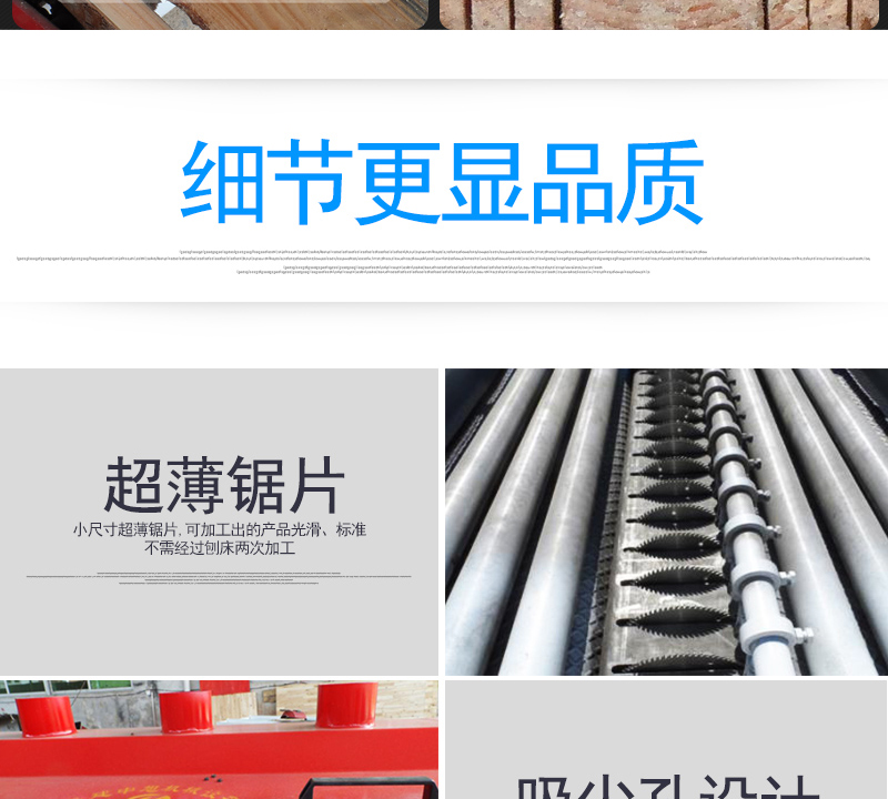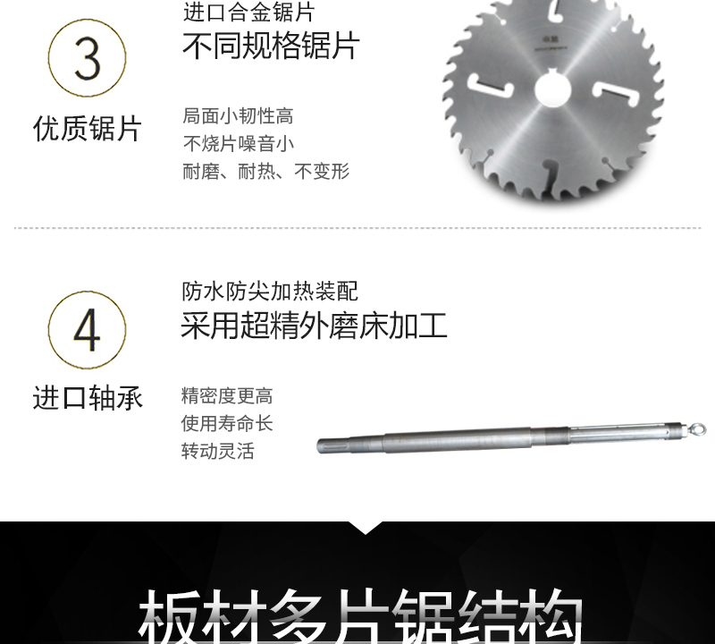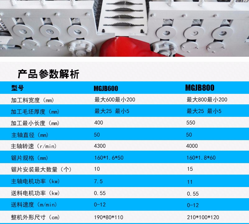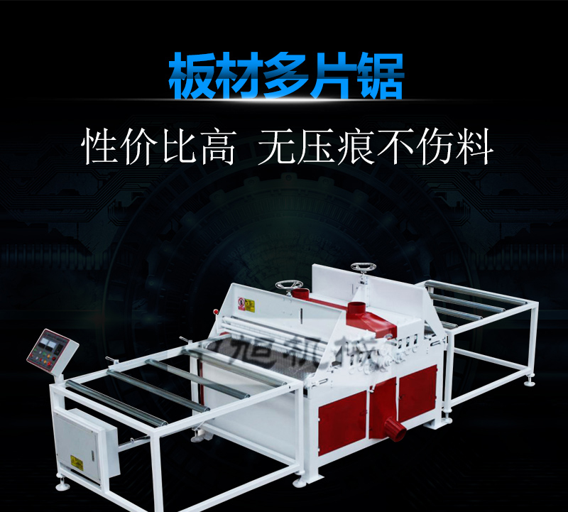 板材多片鋸適合木材加工廠,包裝廠,裝修材料廠等,主要加工整張的建筑模板、細木工板,木質地板,石膏板,保溫板等的開條等寬.可以一次性加工多條,速度快,節(jié)電節(jié)省人工,大大提高了生產(chǎn)效率,擴大了利潤空間,生產(chǎn)的產(chǎn)品光潔整齊、無壓痕,不傷料,提高了市場競爭力。本廠可定做各種多片鋸,可幫各單位設計,生產(chǎn)流水線。