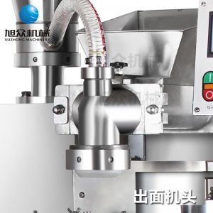 ◆ 本機(jī)采用雙絞龍送面、變頻無(wú)級(jí)調(diào)速,包子大小、出面出餡均可任意調(diào)節(jié),出面均勻、出面暢通、不傷面筋、不斷面筋,出餡系統(tǒng)優(yōu)點(diǎn):餡管不會(huì)掉餡,不會(huì)出現(xiàn)空包子,出餡速度快,壓力小,均勻,適合各種不同的餡料。解決了普通包子機(jī)菜餡走不穩(wěn)的問(wèn)題。