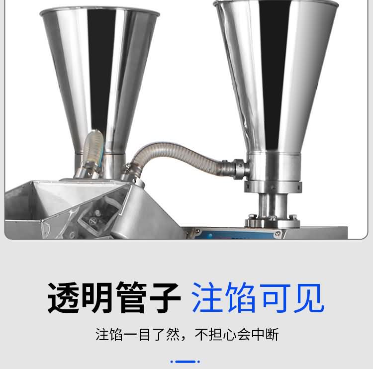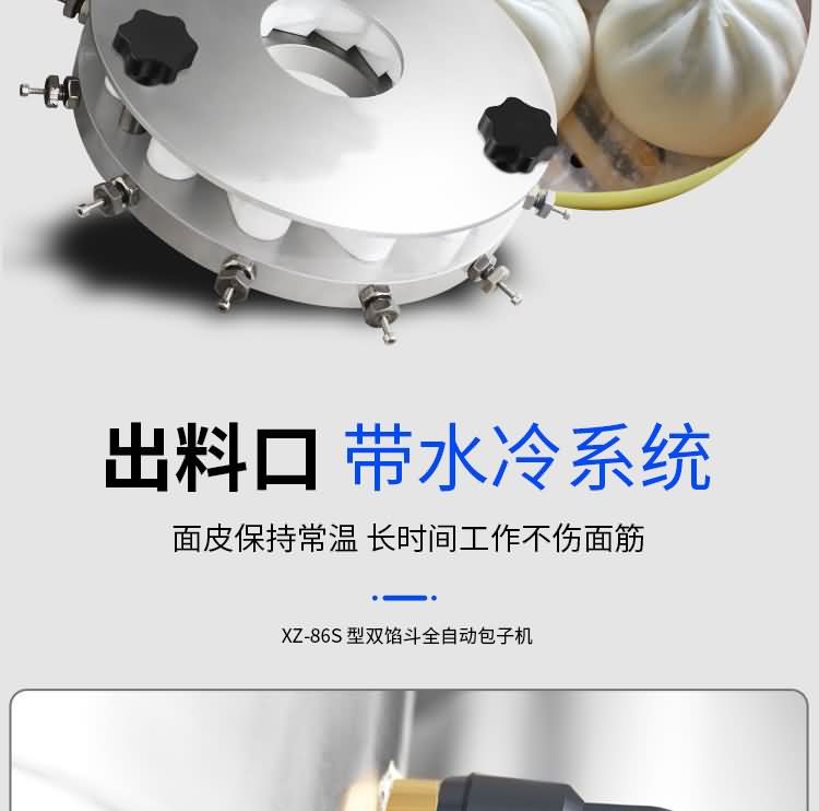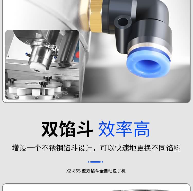XZ-86S型雙餡斗全自動包子機是在XZ-86全自動包子機的基礎上,增設了一個不銹鋼餡斗設計,可以更快速地更換不同餡料,從而提高了工作效率,而且性能更穩(wěn)定,使用壽命更長。