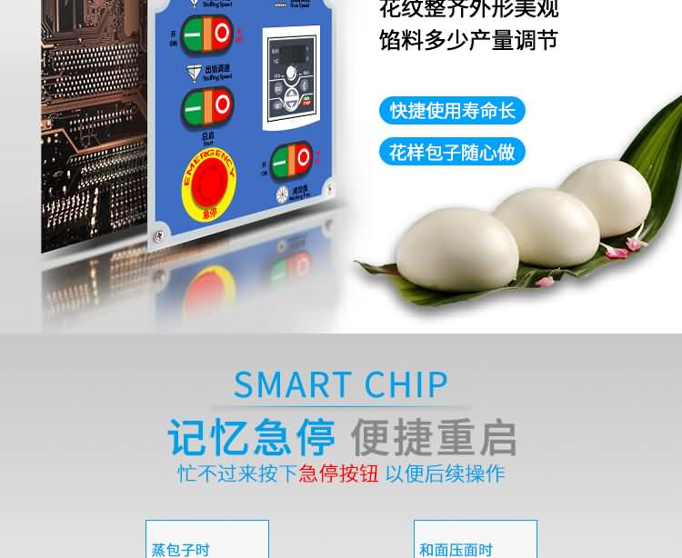 設(shè)備工作效率相當(dāng)于8-12人工人同時手工制作,是現(xiàn)在招工難,高薪水,人員不穩(wěn)定的時期的理想、高效的設(shè)備,適用于賓館、飯店、學(xué)校、機(jī)關(guān)、食堂、饅頭或包子加工廠、早餐工程店及速凍食品廠。本機(jī)提供免費上門培訓(xùn)指導(dǎo)、安裝、調(diào)試、面點工藝傳授。