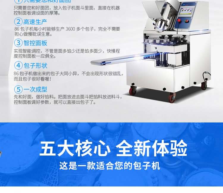 XZ-86型全自動包子機,可生產(chǎn)各種肉包、菜包、肉菜包、小籠包、湯包、水晶包、圓饅頭、奶黃包、豆沙包、叉燒包、南瓜餅、煎堆等十幾種包餡制品。適用于賓館、飯店、學(xué)校、機關(guān)企業(yè)食堂、饅頭或包子加工廠、早餐工程店及速凍食品廠等單位??蓾M足不同客戶群體。免費提供工藝技術(shù)。免費上門培訓(xùn)指導(dǎo)安裝。