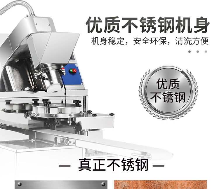 ◆出餡系統(tǒng):立式料斗,立式餡攪龍結(jié)合偏心餡泵同步撥擠餡料方式。結(jié)構(gòu)簡單密閉性好。使注餡均勻流暢,實用于決大多數(shù)菜包,肉包,灌湯包,奶黃包,豆沙蓮蓉包等餡料。并且餡管采用半臥式傾斜裝配,防止了市面上立式出料包子機餡料容易成團下掉造成包子餡料不均勻或出現(xiàn)空包子的現(xiàn)象。