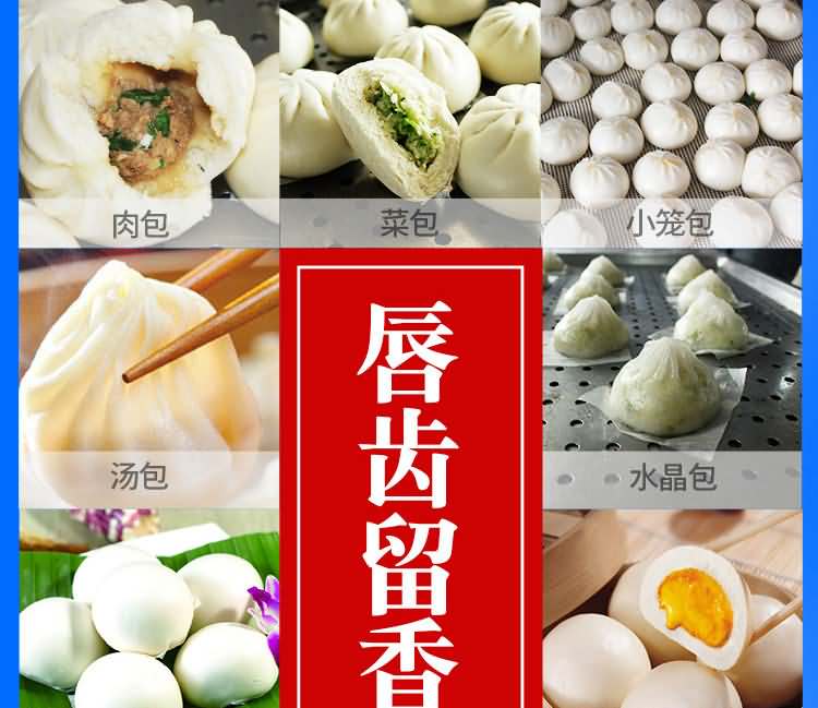 ◆制品多樣化,可生產(chǎn)各種肉包、肉菜包、菜包、小籠包、湯包、水晶包、圓饅頭、奶黃包、豆沙包、叉燒包、南瓜餅等幾十種包餡制品。