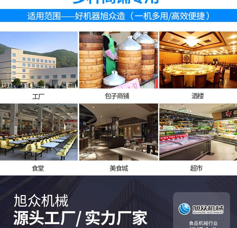 設(shè)備工作效率相當(dāng)于8-12人工人同時(shí)手工制作,是現(xiàn)在招工難,高薪水,人員不穩(wěn)定的時(shí)期的理想、高效的設(shè)備,適用于賓館、飯店、學(xué)校、機(jī)關(guān)、食堂、饅頭或包子加工廠、早餐工程店及速凍食品廠。