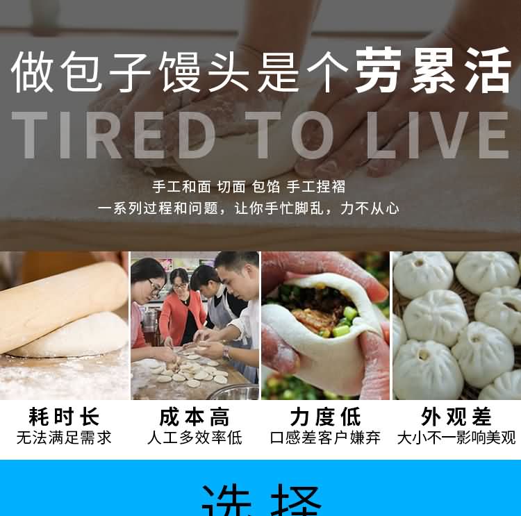 ◆采用高品質微電腦控制,人性化的控制,自動化的程度高,定量準確,制品大小統(tǒng)一,饅頭面帶厚度、成型、切段大小隨意可調(diào)。