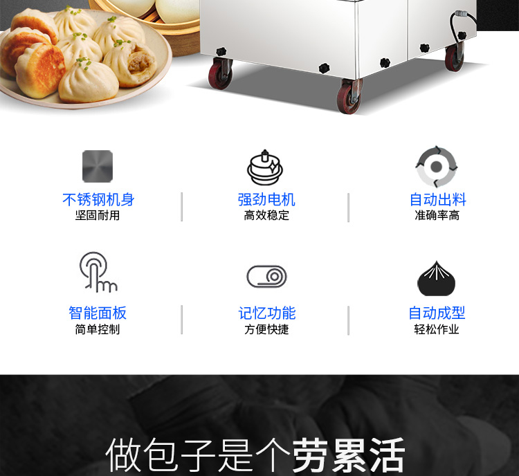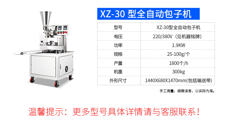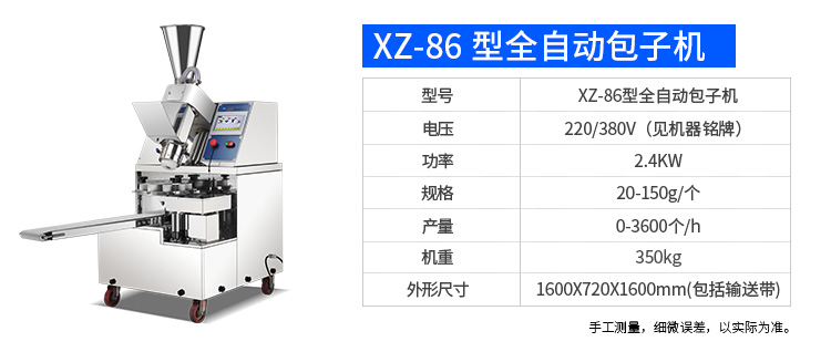 旭眾牌XZ-915全自動(dòng)包子機(jī)體積小重量輕,外殼及接觸食品部分均由不銹鋼制造,外觀精美耐用;采用三變頻無(wú)極變速調(diào)控,生產(chǎn)性能穩(wěn)定。設(shè)計(jì)先進(jìn),結(jié)構(gòu)簡(jiǎn)單,操作方便。包子機(jī)三大特色: