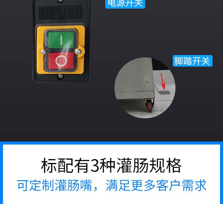 泵浦式灌腸機(jī)是加工制作香腸、火腿腸、親親腸、臺(tái)灣熱狗等漿狀的機(jī)械,以及做火鍋料的灌漿配套設(shè)備,本機(jī)外觀選用不銹鋼材料制造,外型美觀、體積小、噪音低、用電省,生產(chǎn)效率高,操作方便。
