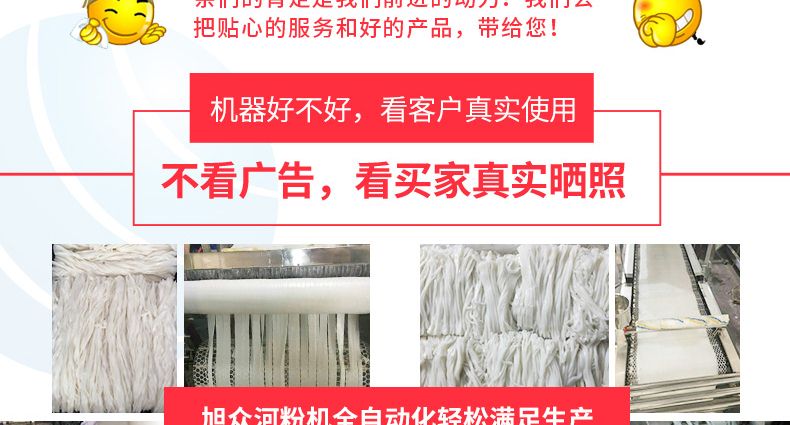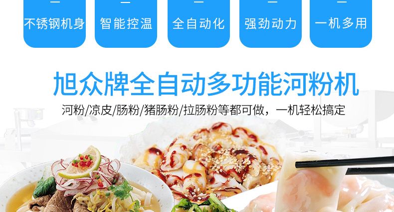 本公司推出的高效節(jié)能河粉機技術(shù)先進、品質(zhì)領(lǐng)先。該河粉機既傳承民間的河粉制作工藝,使之保留并超越原有風味,又引進先進的食品加工技術(shù),大大提升了生產(chǎn)效益。廣大客戶使用高效節(jié)能河粉機后一直贊譽:該機是河粉機中的科技典范,旭眾憑借其品質(zhì)與優(yōu)良服務,是用戶的優(yōu)選選擇。該機一機多用,可根據(jù)需求定制河粉、涼皮、拉腸粉、豬腸粉等功能。