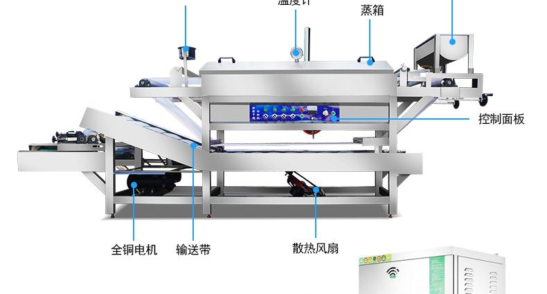◆節(jié)能低耗:通過新型節(jié)能路、節(jié)能風管及隔熱層等,使水箱內(nèi)膽充分吸收熱量,因此,比普通河粉加工機器節(jié)能40%以上;