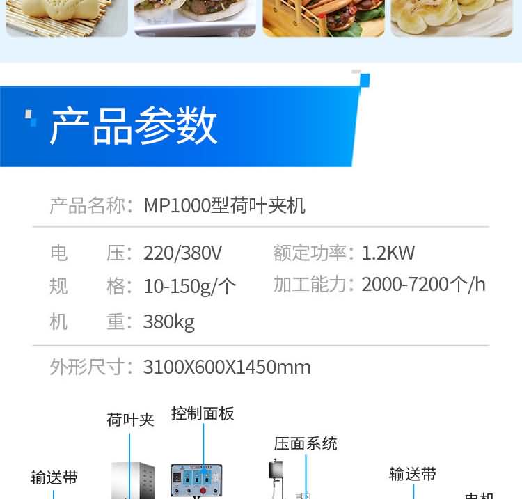 MP1000荷葉夾機(jī),可生產(chǎn)各種荷葉夾、蝴蝶夾、肉夾饃、也可生產(chǎn)刀切饅頭等面食產(chǎn)品。適用于個體戶、食品廠、學(xué)校等各種工作場所,可滿足不同客戶群體。免費提供工藝技術(shù)。