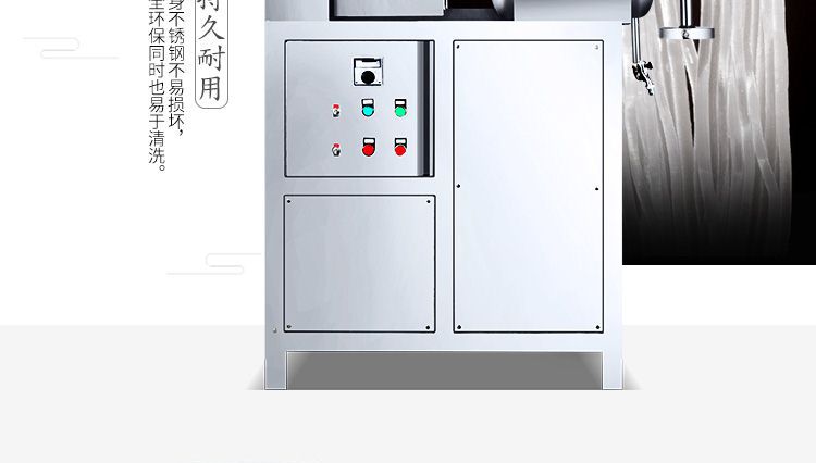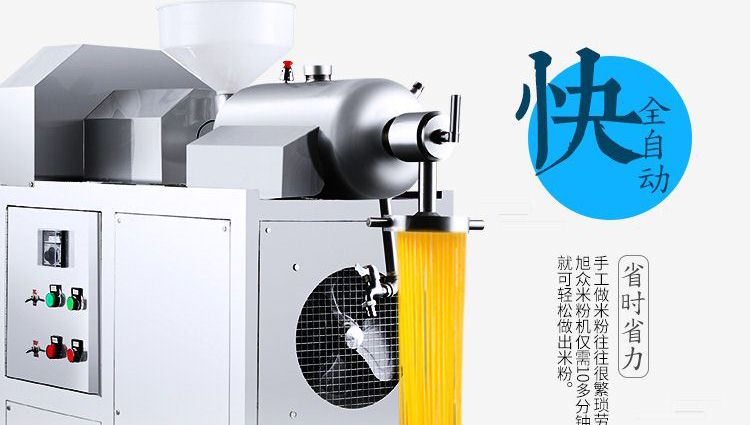改進(jìn)型米粉、米線專用機(jī),裝有自動溫空裝置,整個生產(chǎn)過程設(shè)備均在恒溫狀態(tài)下運(yùn)行,自動化程度高,操作簡單,l人即可生產(chǎn)??缮a(chǎn)米粉、米線、桂林米粉、過橋米線、年糕等產(chǎn)品。各種形狀都可生產(chǎn)(圓、扁),加工食品外表光滑,厚薄、寬窄、粗細(xì)均勻可調(diào),筋軟適度,有彈性,口感柔軟、味道純正。