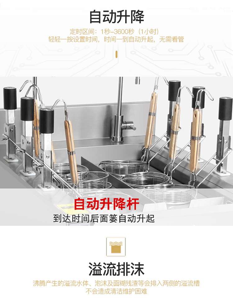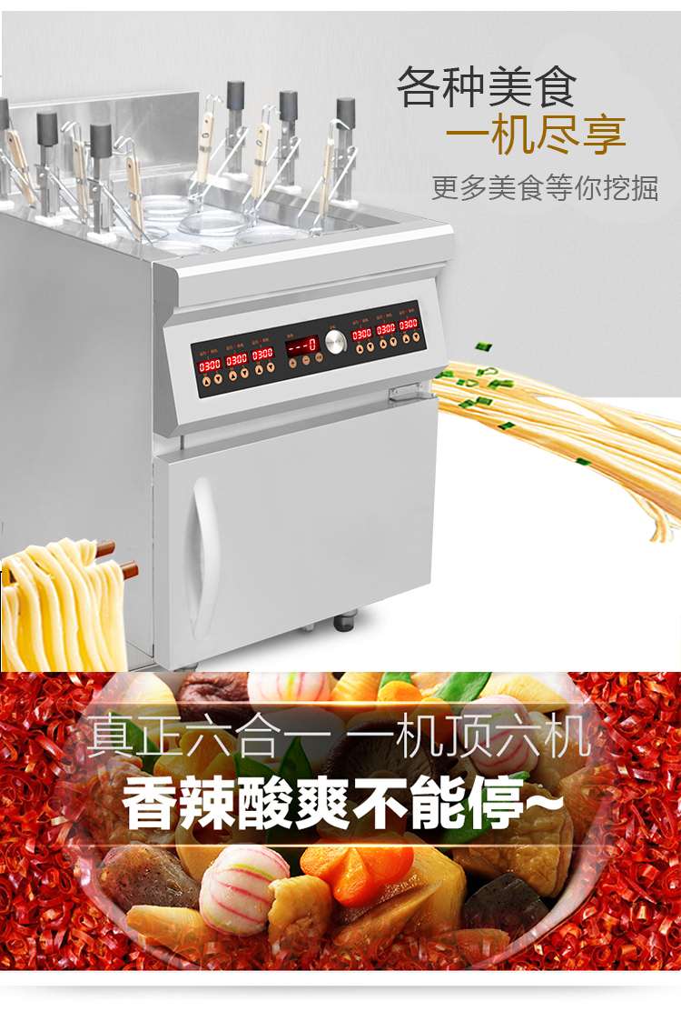 | 產(chǎn)品名稱 | 柜式電磁6孔升降煮面爐 |