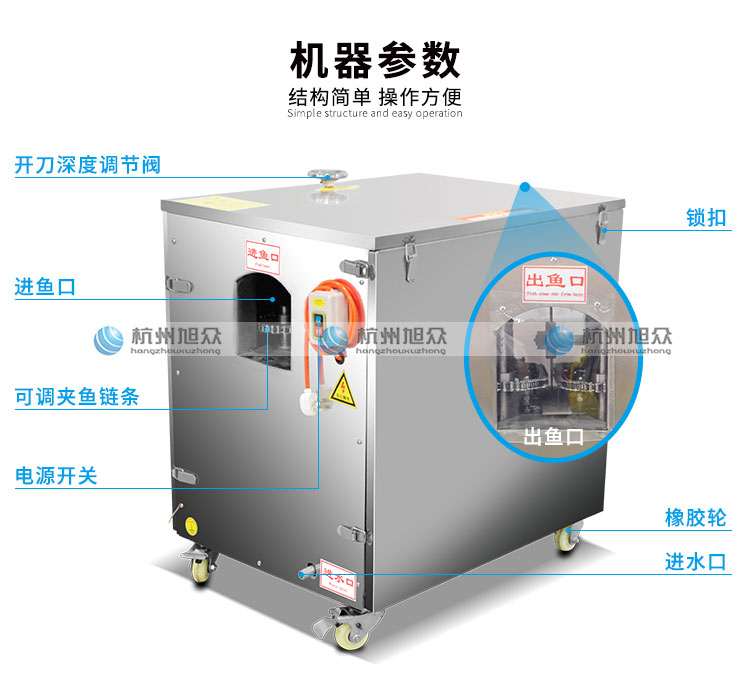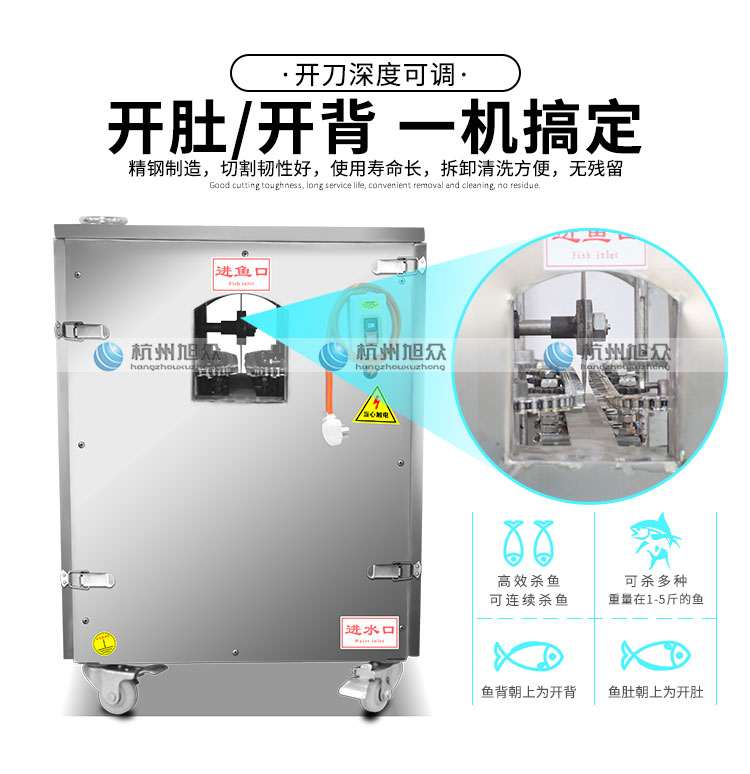 本機(jī)整機(jī)采用優(yōu)質(zhì)不銹鋼制造,耐磨耐用,符合食品衛(wèi)生標(biāo)準(zhǔn)。把魚放在設(shè)備的入料口,輸送鏈條自動把魚送到切割刀片處將開肚/開背(魚肚朝上放為開肚,魚背朝上放為開背),適用于水產(chǎn)品加工廠,肉類加工廠,魚類罐頭廠,大型餐飲行業(yè)等單位。本產(chǎn)品不會對魚頭、魚尾、魚鰭造成損傷。