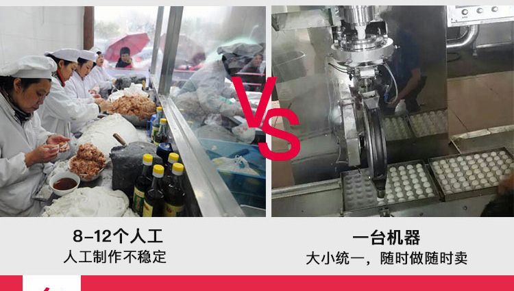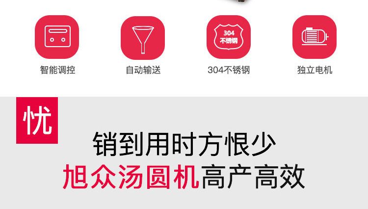 旭眾牌VFD-4000A型全自動湯圓成型機是一款依外皮及餡料的各類不同,可制作湯圓、豆沙包、南瓜餅、奶黃包、含餡饅頭、玉兔包等包餡食品。功能齊全,適用性廣,自動化程度高,定量準(zhǔn)確,操作簡單,只要將面團與餡料放入進料口,開機便可自動搓圓、成型,制品不易變形。