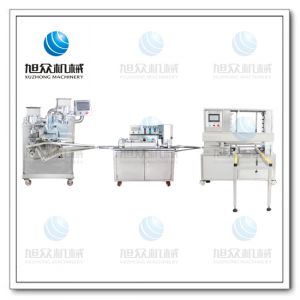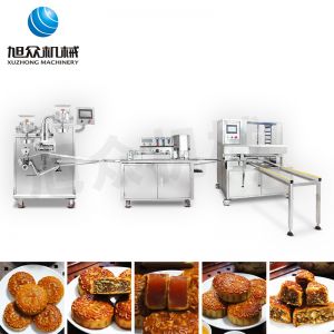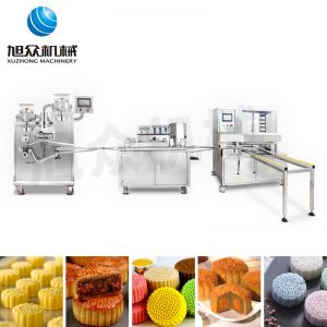 五. 月餅自動(dòng)包餡機(jī)與月餅自動(dòng)成型機(jī)、月餅自動(dòng)排盤機(jī)組合成一條月餅自動(dòng)生產(chǎn)線,自動(dòng)化程度高.提高生產(chǎn)效率。