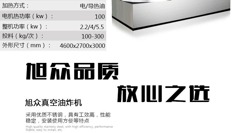 ●雙室采用上下兩個罐,脫油時確保絕對無回油,使含油、含水率低。油炸、脫油、脫水、油過濾一體化設(shè)計,在真空下連續(xù)性完成,產(chǎn)品含油量低,產(chǎn)品處于負壓狀態(tài),在這種相對缺氧的條件下進行食品加工,可以減輕甚至避免氧化作用(例如脂肪酸敗、酶促褐變和其他氧化變質(zhì)等)所帶來的危害。在負壓狀態(tài),以油作為傳熱媒介,食品內(nèi)部的水分(自由水和部分結(jié)合水)會急劇蒸發(fā)而噴出,使組織形成疏松多孔的結(jié)構(gòu)。