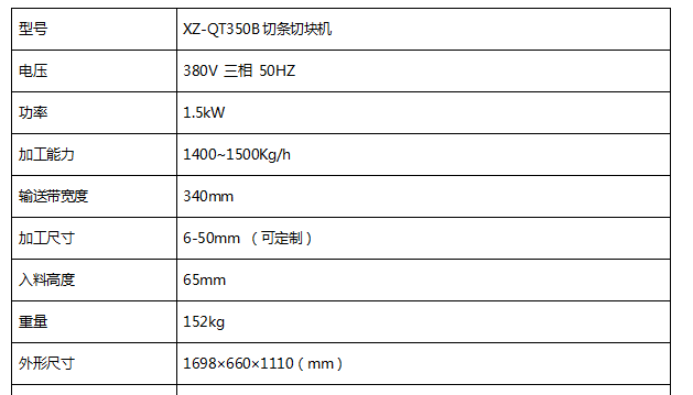型號 | XZ-QT350B切條切塊機 |